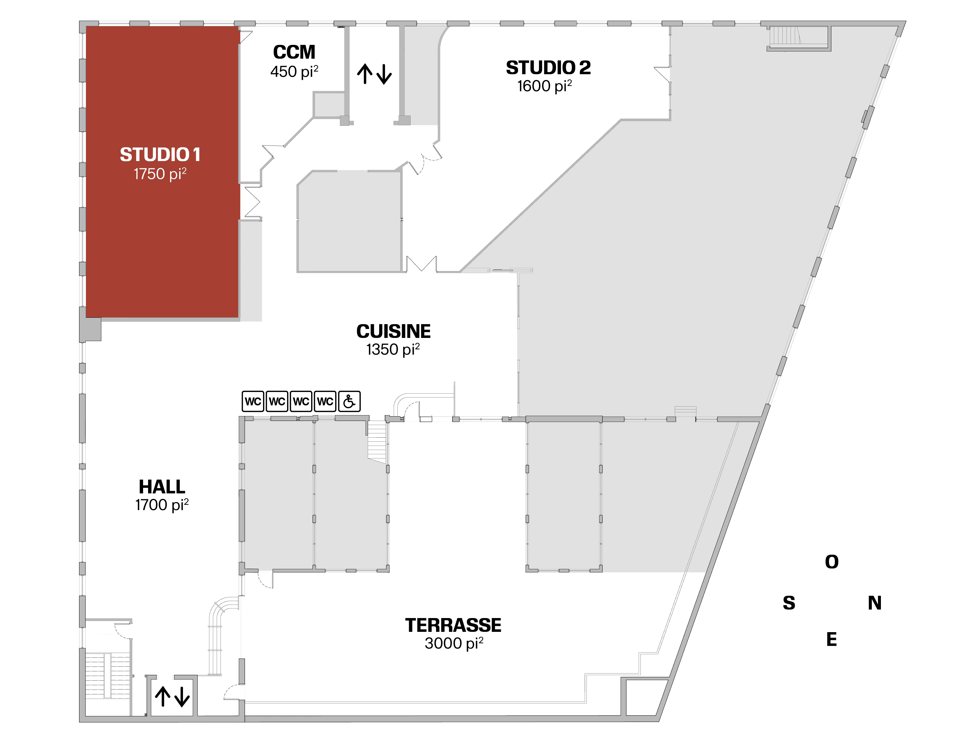 The Studio 1 can accommodate 165 to 200 people standing or 110 to 130 people seated. It features abundant windows with full blackout capability and offers a view of Mount Royal.